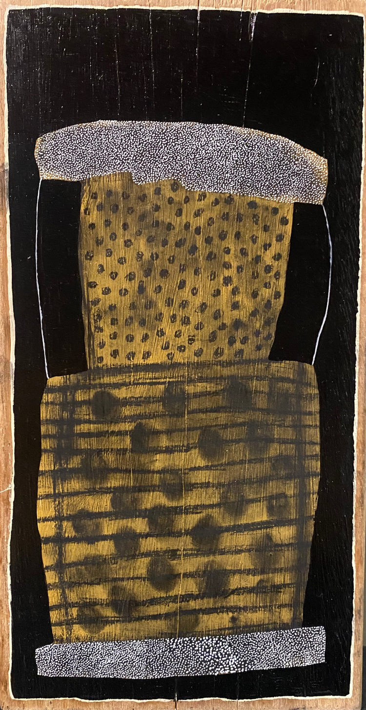 CHARCOAL, OIL PEN ON HARDWOOD I 19 X 36CM