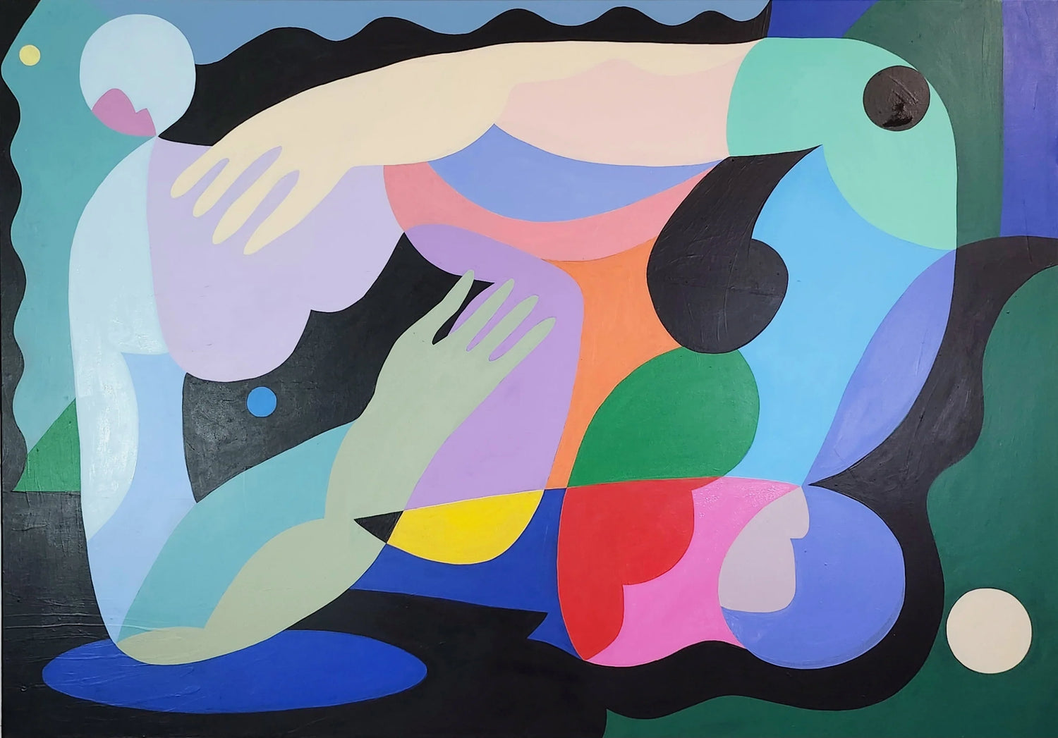 My work explores human connections and relationships, focusing on their irony, vulnerability, and undefined complexities. Using abstract yet familiar forms, I depict the interplay between attachment and detachment. Harmonised, bold colours convey paradoxes of joy and sorrow, intimacy and isolation. Through fragmented compositions, I evoke shifting dynamics and ambiguous narratives, inviting viewers to reflect on the ever-evolving nature of connection and the inevitability of solitude.