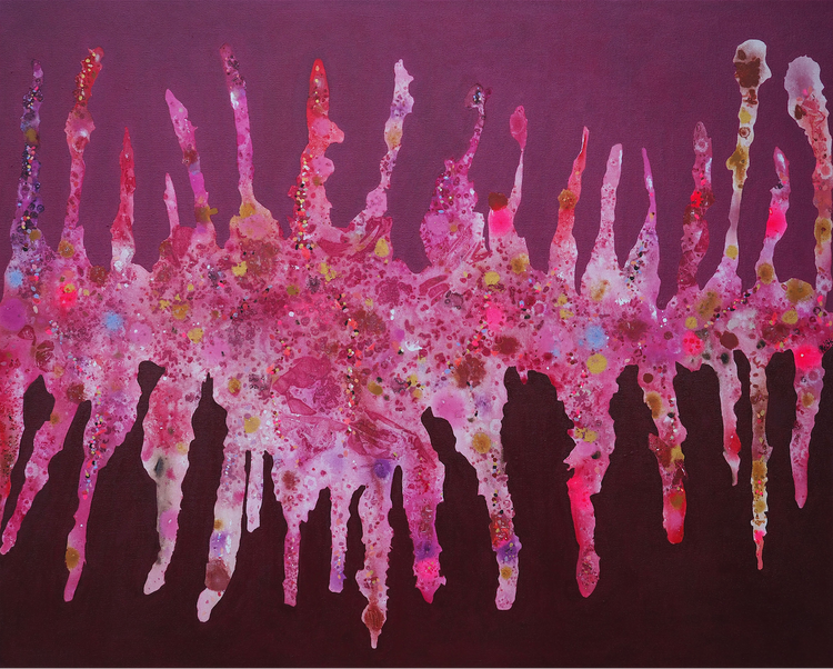 105cm x 85cm I AcrylIc, oil & tulle on canvas I  Framed in Oak