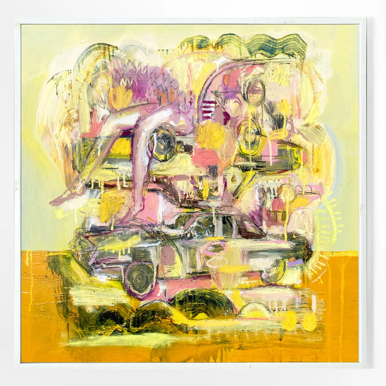 OIL, ACRYLIC, SPRAY PAINT, WAX & OIL STICK ON CANVAS I FRAMED IN TIMBER I 78 X 78CM