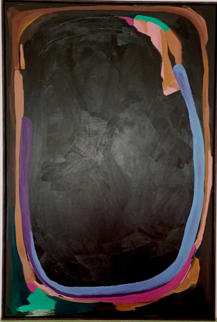 The Space Within is a reflection of personal grief and loss; In 2020, when the whole world was in the midst of COVID pandemic crisis, I suffered a miscarriage and shortly after travelled to the UK to care for my mother through illness, sitting with her as she passed away. Since returning to Australia I have had the time and space to process my grief and reflect on this journey, arriving at the conclusion that in spite of death we are all still connected in infinite ways; I have been made stronger by both my experience of miscarriage and my mother's bravery. The Space Within celebrates the peacefulness and simplicity of death and the bonds that remain unchanged, the colourful outer ring a symbol of this eternal connection shining through the dark times.
