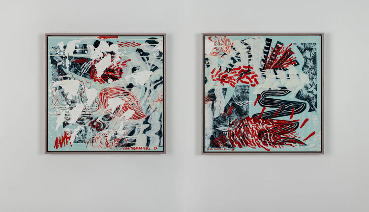 DIPTYCH I ACRYLIC ON TIMBER I FRAMED IN MERANTI HARDWOOD I 64 X 64CM