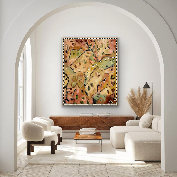 128CM X 158CM I MIXED MEDIA ON CANVAS I FRAMED IN EUCALYPTUS