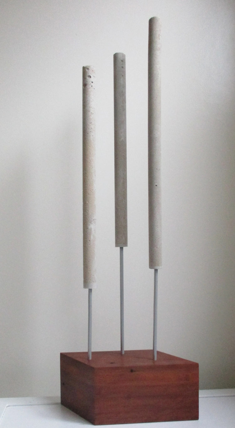 The sculpture was made in response to polycentrism, an architectural concept of the ‘inbetween space’. Polycentrism is defined through the many centres an object possesses, which can be interpreted depending upon an individual and their approach. Its minimal form can be influenced by its surrounds and the viewer, where its particulars (sculptural components) create a scene and association, thus a true point of connection within space.