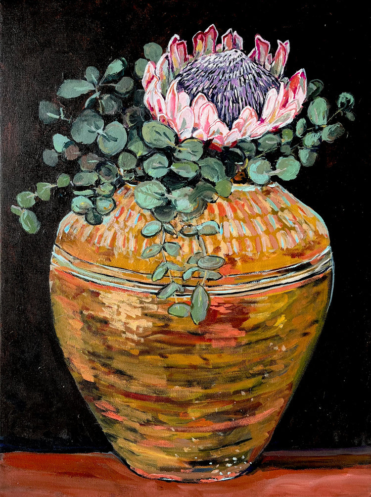STILL LIFE WITH RICE WINE JAR AND PROTEA