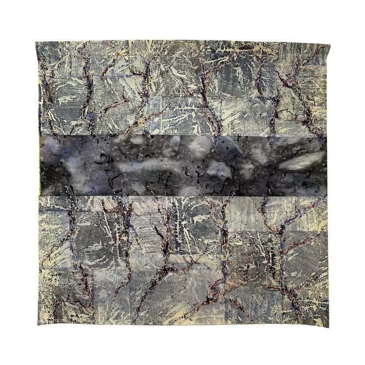 72cm x 70cm I acrylic, pastel & woodblock on reclaimed canvas