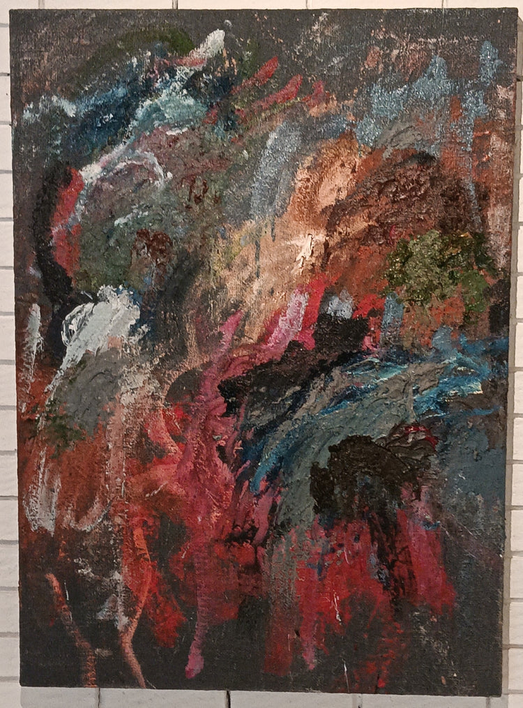 OIL & MARBLE DUST ON HESSIAN BOARD