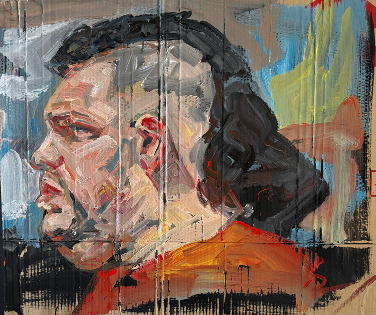 ACRYLIC ON UPCYCLED CARDBOARD, MOUNTED ON BLACK TIMBER I 91 X 107CM
