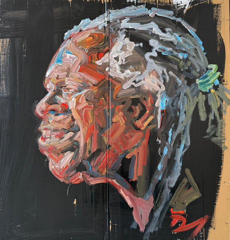 ACRYLIC ON UPCYCLED CARDBOARD, MOUNTED ON BLACK TIMBER I 103 X 90CM