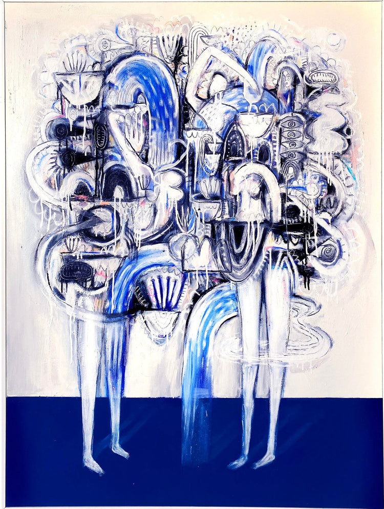 92CM X 103 CM I SPRAY PAINT, ACRYLIC, WAX PENCIL & OIL STICK ON CANVAS I CUSTOM FRAMED IN TIMBER I 2024