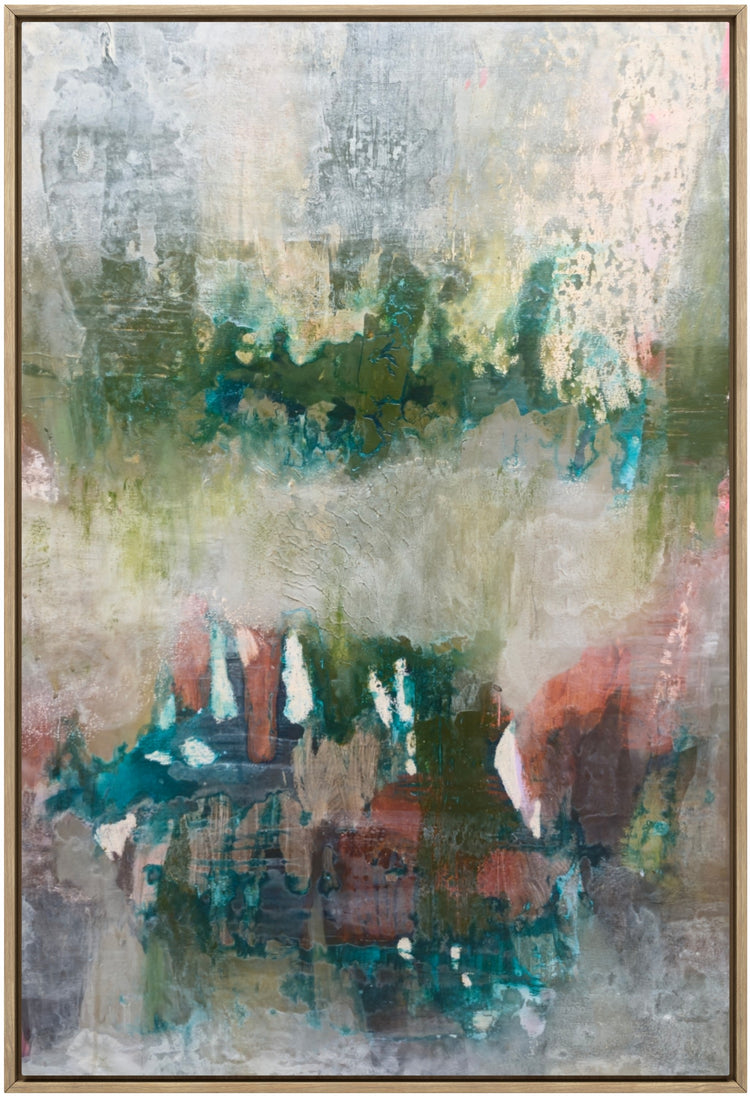 MIXED MEDIA ON CANVAS I FRAMED IN FLOODED GUM I 63 x 93CM