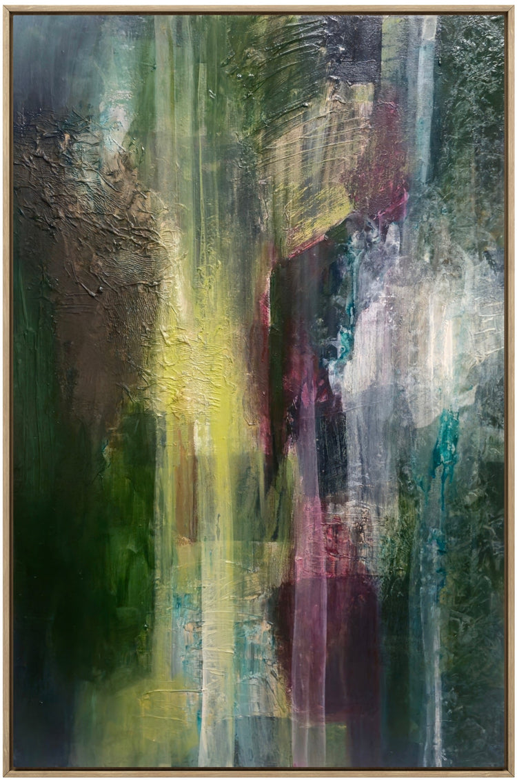 MIXED MEDIA ON CANVAS I FRAMED IN FLOODED GUM I 63 X 93CM