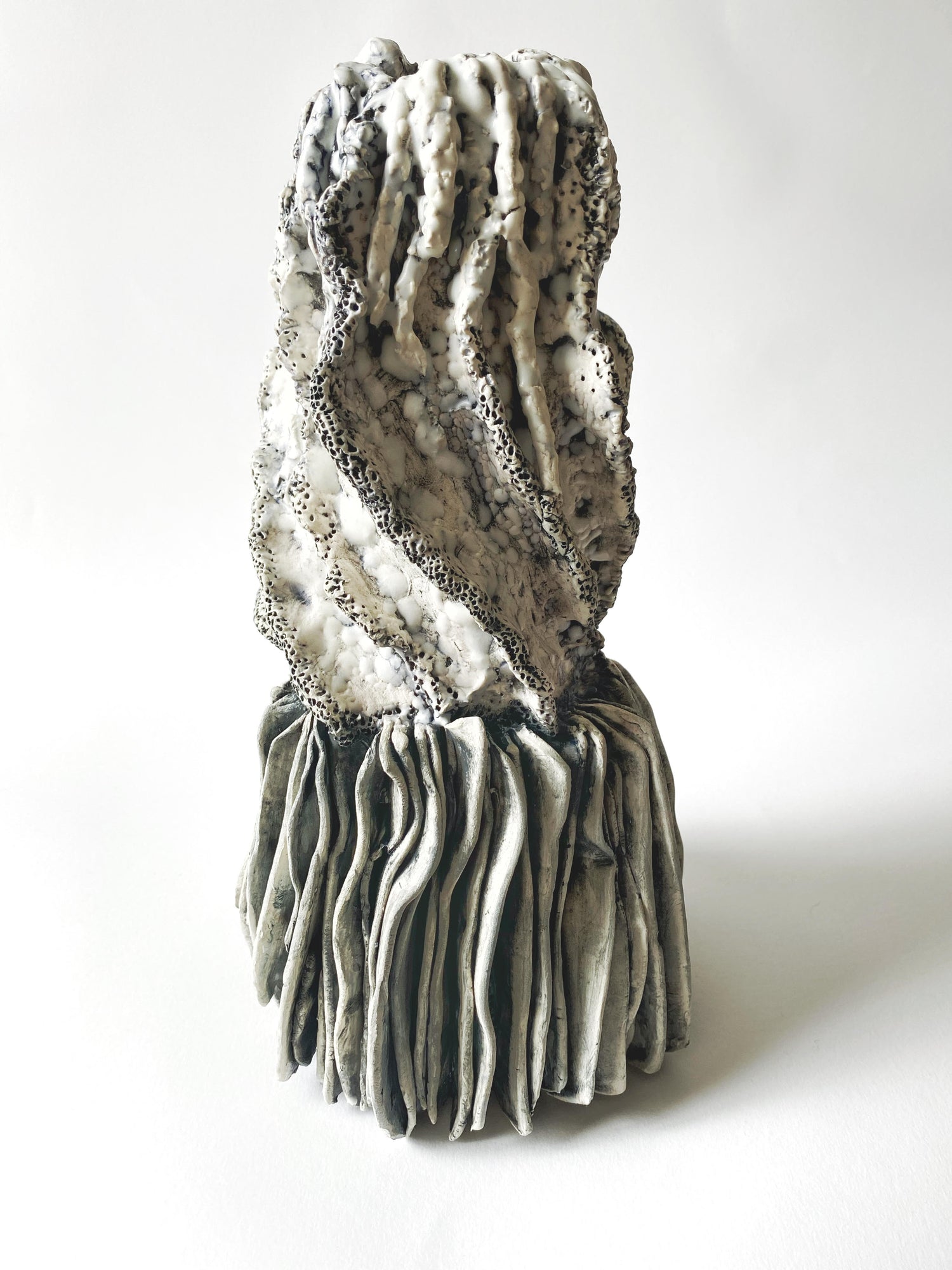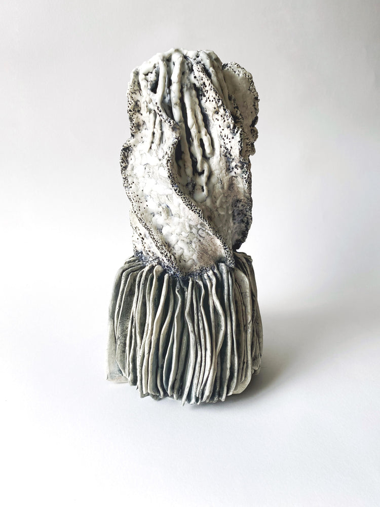 Hand built white earthenware | underglaze wash with satin and crawl glaze | non functional vessel | 31 x 16 cm | 2022